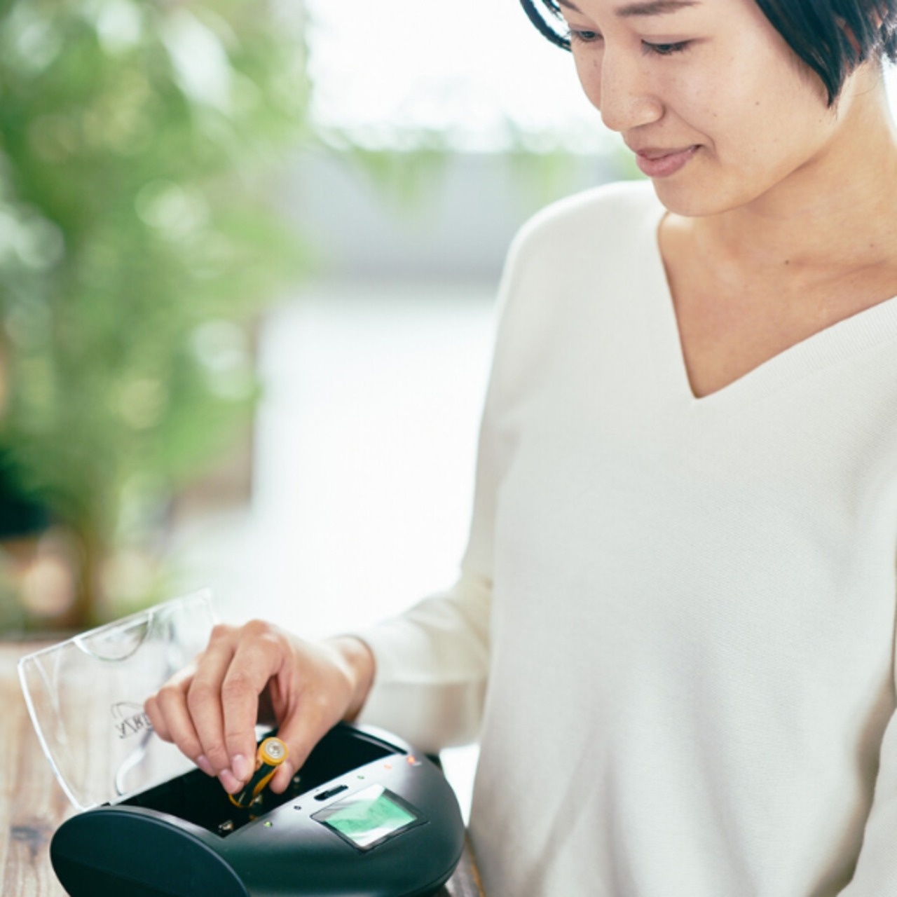 (1)使い方は簡単! 使用済みの電池を本体に入れるだけで充電を安全に制御します。充電中・充電完了・電池残量も一目でわかる液晶ディスプレイ搭載。