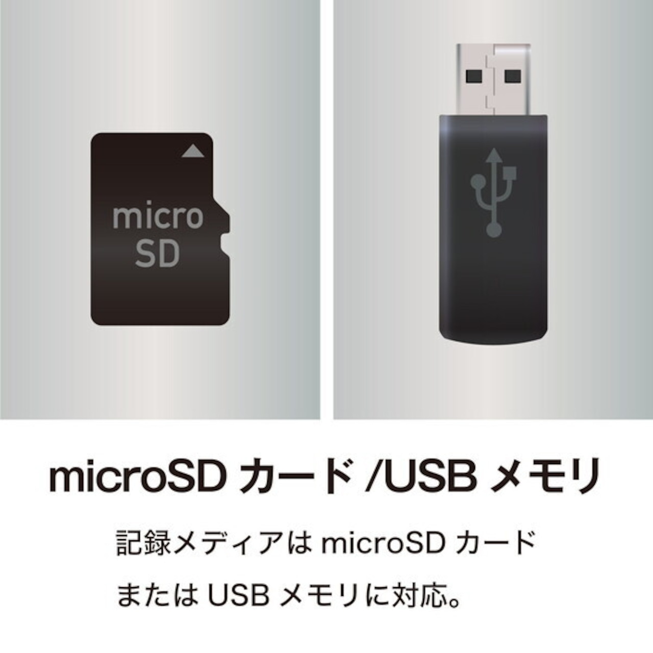 (1)本品だけで作業が完結するのでパソコンが苦手な方でも安心。難しい操作は一切ナシ!マイクロSDカードまたはUSBメモリに音声を保存できます。