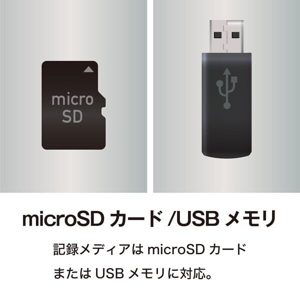 ・外部メモリー:microSDHC(スピードクラス4〜10)/4GB〜32GB(別売)、microSDXC(スピードクラス10)/64GB〜128GB(別売)、USBメモリ/128GBまで
