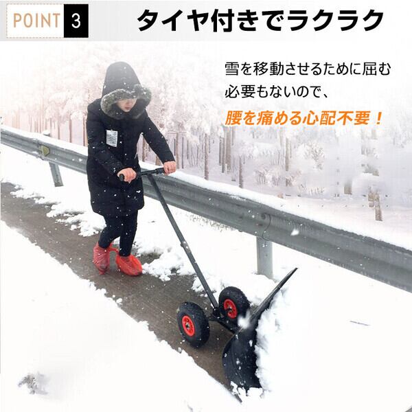 (3)タイヤ付きでラクラク!雪を移動させるために屈む必要もないので、腰を痛める心配も不要です!