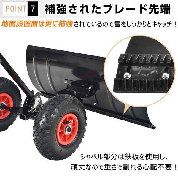(7)補強されたブレード先端!地面設置面は更に補強されているので、雪をしっかりとキャッチします!シャベル部分は鉄板を使用し、頑丈なので重さで割れる心配もありません!