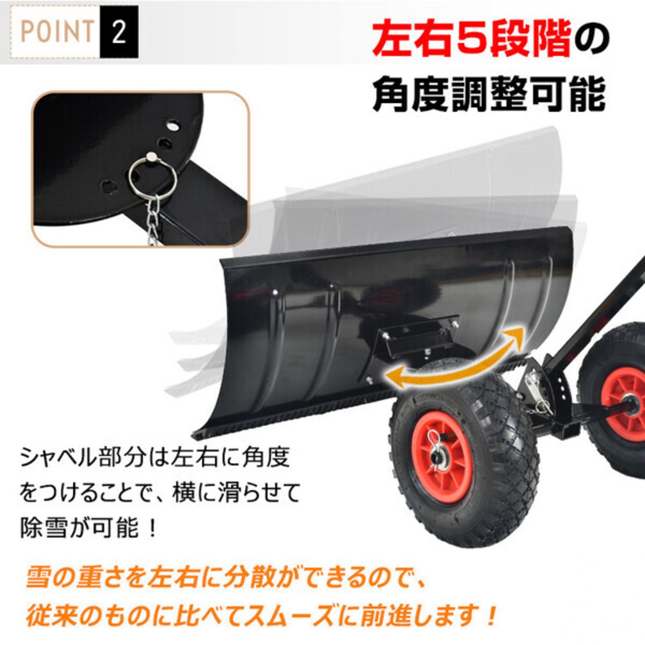 (2)左右5段階の角度調整可能!シャベル部分は左右に角度をつけることで、横に滑らせて除雪が可能です。雪の重さを左右に分散ができるので、従来のものに比べてスムーズに前進します!