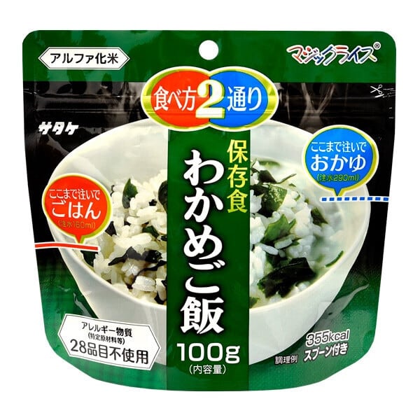 ・[わかめご飯]うるち米(国産)、調味顆粒(食塩、酵母エキス)、わかめ/調味料(アミノ酸等)、酸味料