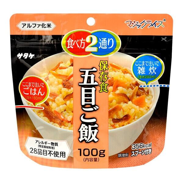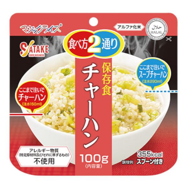 ・各100g(白飯、わかめご飯、五目ご飯、チャーハン)×各3袋、保存水:500ml×6本